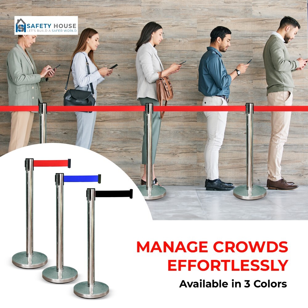 Queue barriers help organise foot traffic efficiently. They are widely used in banks, events, malls, and ticketing counters.